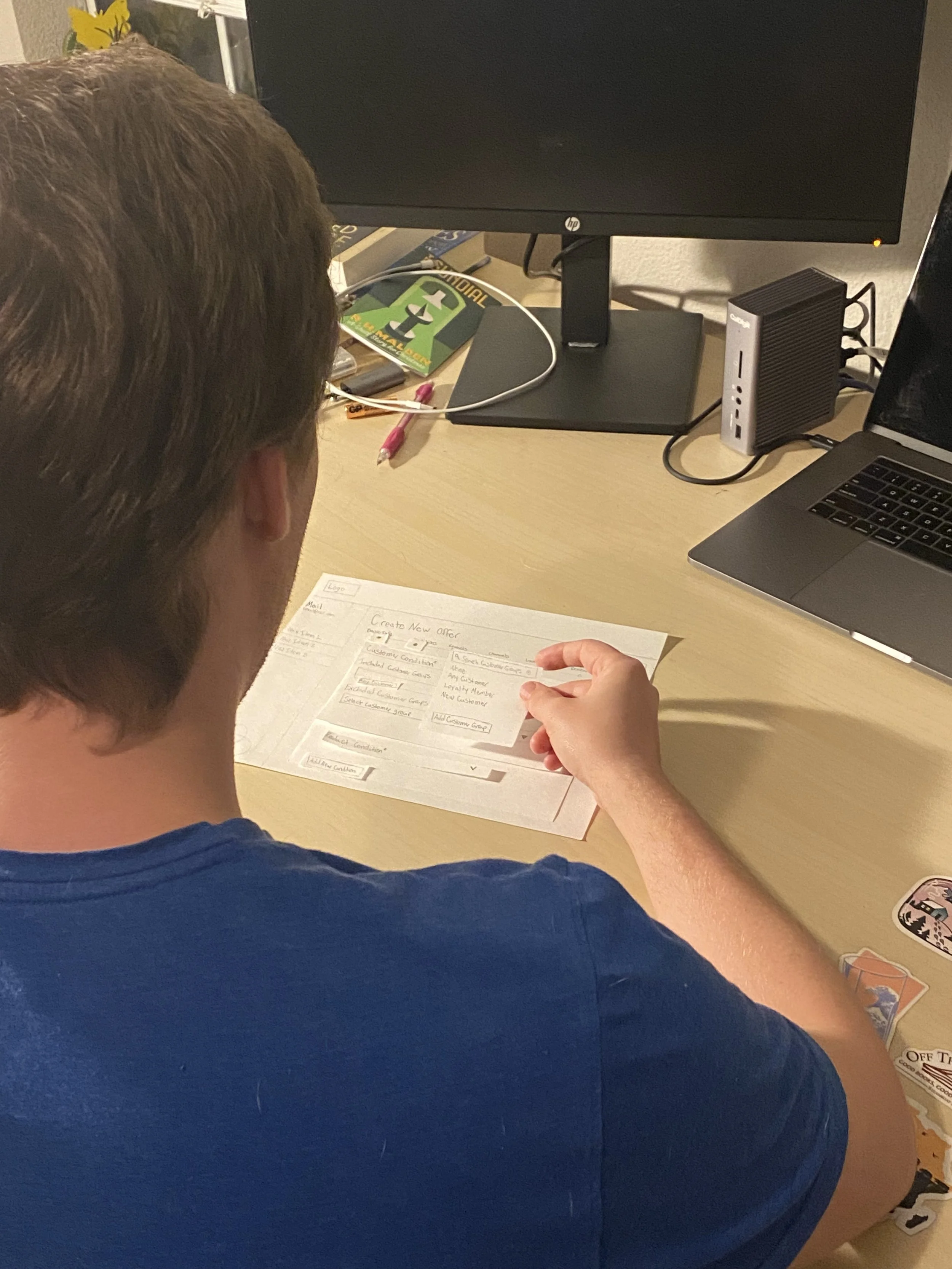 Once we had a good idea of what the product did and how it worked, myself and one other intern sat down to design the interactions for the new flow. Working together on a whiteboard, we went through the process of creating a new offer.