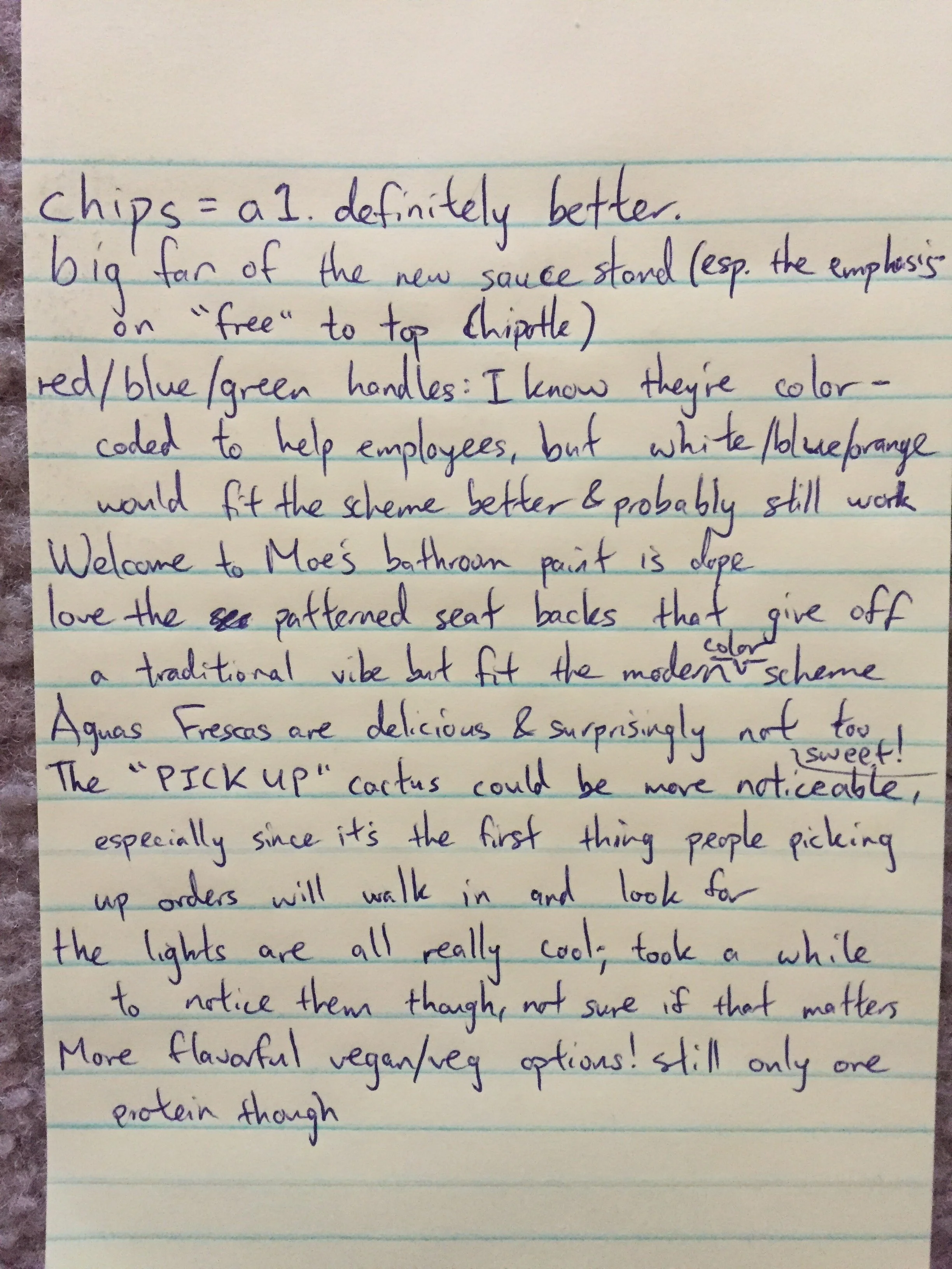 We wanted to get some general background knowledge about Moe’s so that we could better understand our industry partner as well as our users.